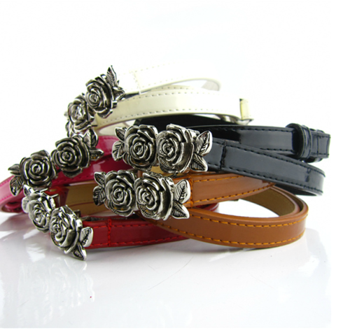 korean fashion thin flower belt korean style women's belt thin belt decorative belt patent leather black red
