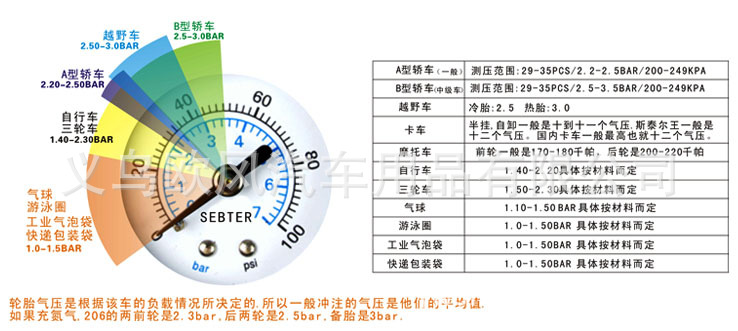 5、钢芯胎压计,自带放气功能,可单独使用。
