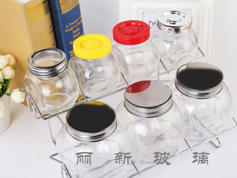 iron rack set seasoning bottle seasoning bottle storage jar sugar jar glass bottle glassware glassware