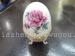 英寸(10公分)鸡蛋型陶瓷首饰盒。采用高温白瓷制造。蛋身表面有红色玫瑰花点缀。底部一三角支撑。蛋身中部一金属圈连接,中间部位可开合。可放入小饰品之类。也可单做精美工艺品摆放。