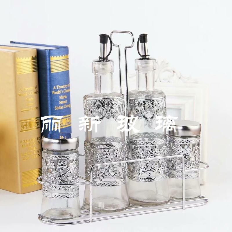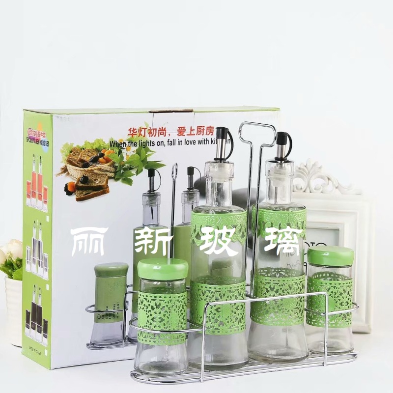 combination set oil & vinegar bottle set seasoning bottle set seasoning bottle pepper cellar iron frame set