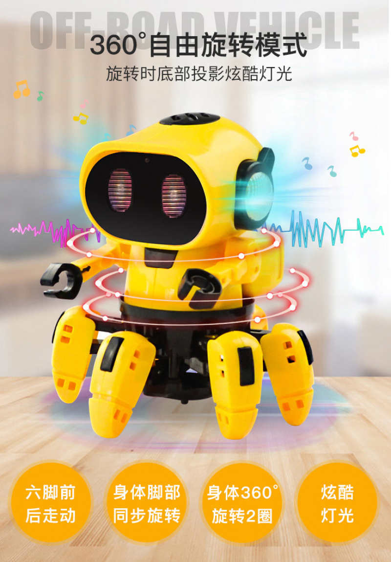 电动六爪机器人,六只爪子都会走动噢,可以随机前进后退走动,左转和右转,自身可以360度转圈。