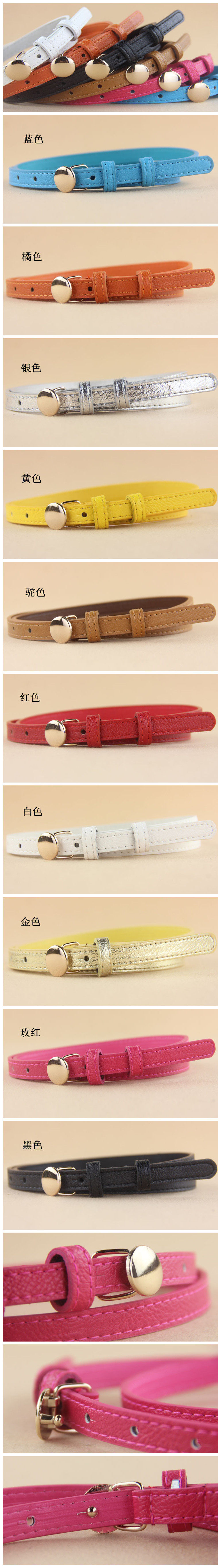 fashion all-match thin belt round bead buckle double ring simple decorative small belt for women
