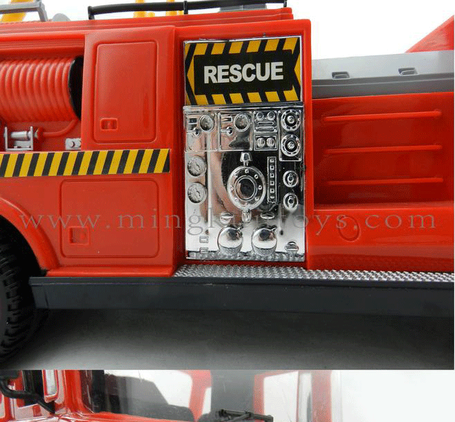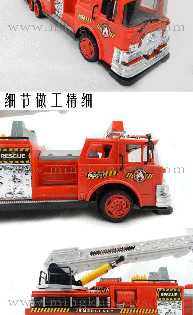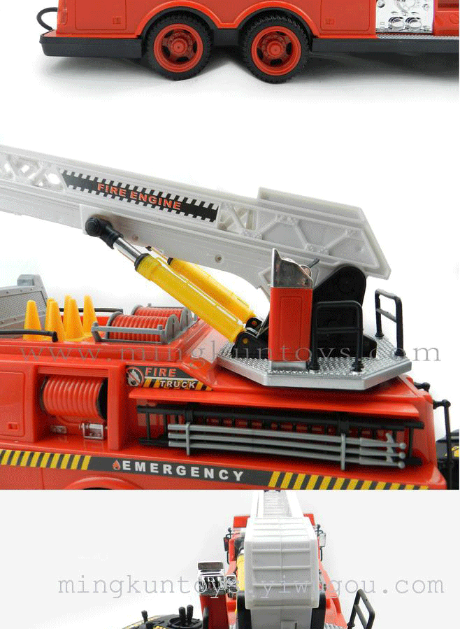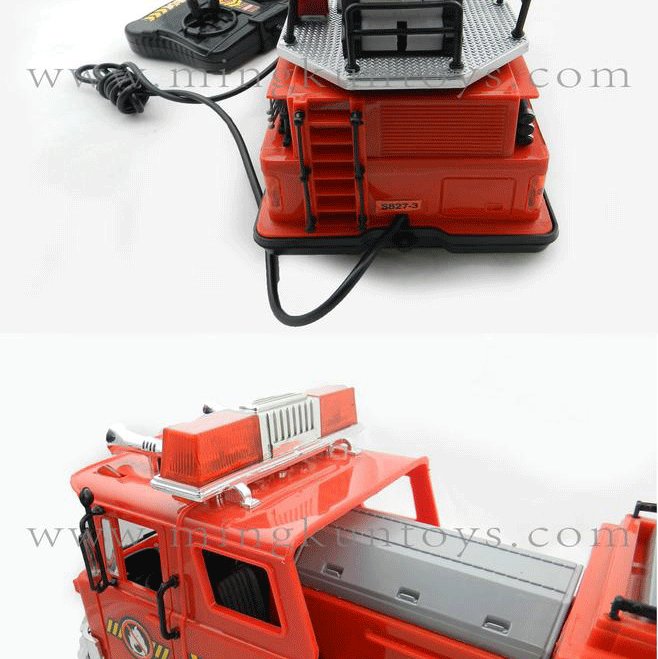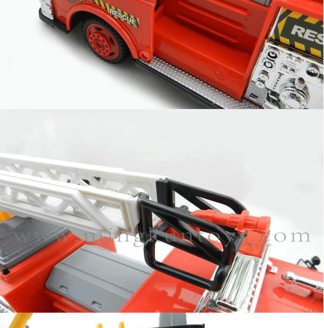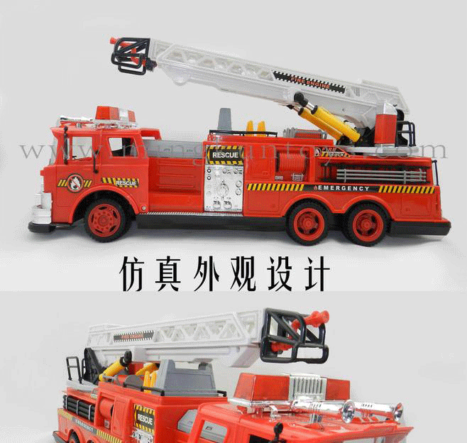 About Product:Simulation of fire-fighting vehicles, using environmentally-friendly materials, good quality, attractive appearance. the baby can move back, to turn left or right, ladder lifting, can be rotated 360 degrees, and fire sirens, 1.5 meters long wired remote control