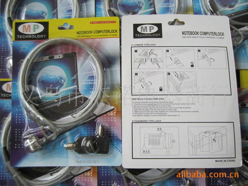 When used as long as the steel rope is fixed on the fixture, the lock body wear out from the noose, received the laptop lock, lock locks can ensure safety, prevent owners don't pay attention to when the notebook away by others.