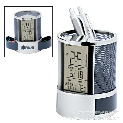 JOHNYSTAR has been producing and processing various electronic commodities in large quantities for a long time. Js-1253 luminous pen holder calendar cylinder, color box packaging, novel style, stable and reliable quality, low price and reasonable price, with accurate calendar and clock; The Celsius temperature can be selected.
