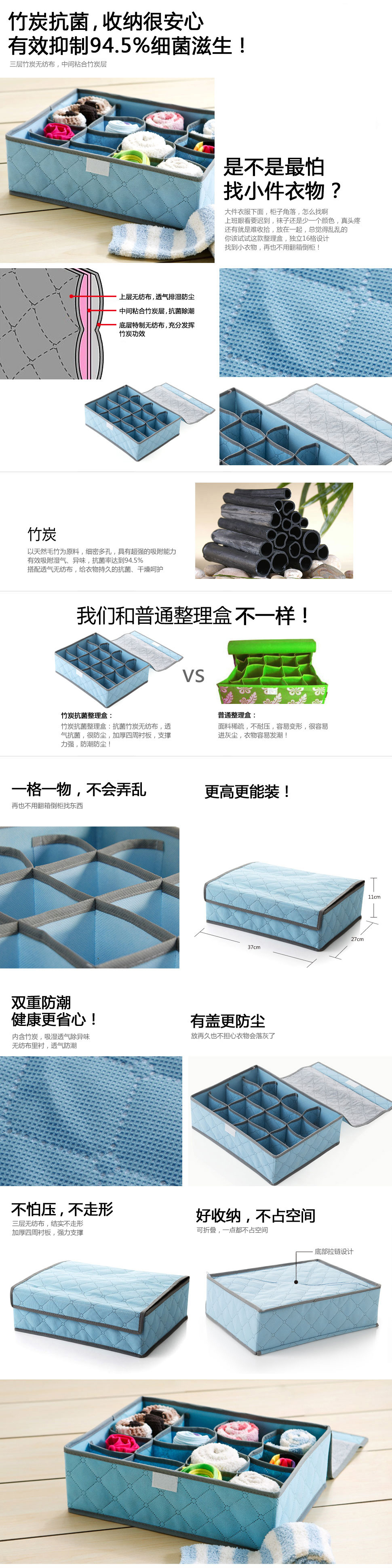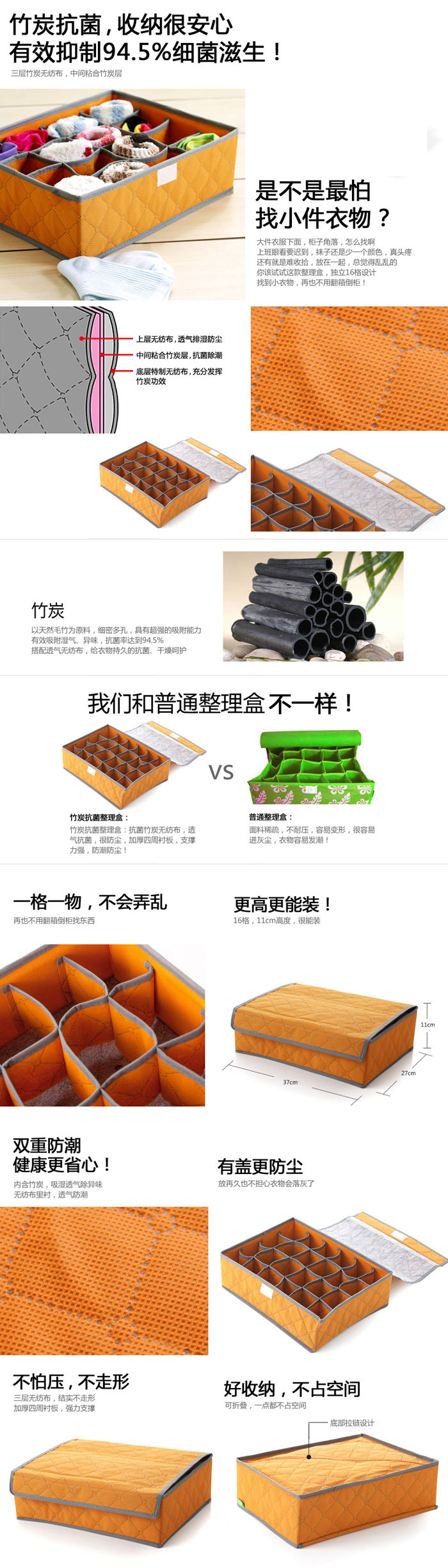 the bamboo charcoal non-woven storage box (16), outer layer and a partition using all natural bamboo green quilted cloth, wrapping the environmental protection can be recycled PP non-woven fabric, and the inner clamp environment-friendly cardboard suture and. Bamboo charcoal storage products, light and durable, can effectively use the space. Non-woven material, with soft and breathable, long effective prevent various moth invasion, is not easy to damp, moth and mildew, and is very suitable for being used in household leisure life. Unique bamboo charcoal ingredients, can remove the peculiar smell, keep the goods fresh, is the best choice for the storage of goods.
