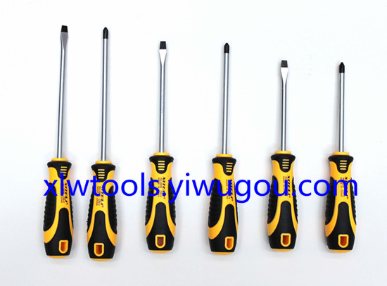 【Product Name】: Black and Yellow Handle Round Bar Single-use Magnetic Blackhead Screwdriver Cross and Square for Hoisting 【Product Model】: 0838 【Product Size】: Two sets of 6.0*100mm/4 inch, Two sets of 6.0*125mm/5 inch, Two sets of 6.0*150mm/6 inch 【Product Material】: Blade Shaft: Chromium Vanadium Steel/CR-V Handle: Plastic (Environmental friendly) Note: Quantity can be negotiated for price. |