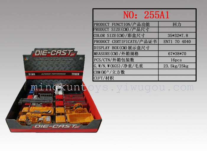 Alloy pull back model fire engine red vehicle truck toy 255A1