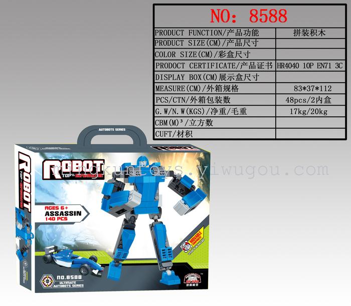 About Product:Cartoon toy building blocks, DIY assembled robot car, bright color, materials and environmental protection, packaged, is the child's gifts of choice.
