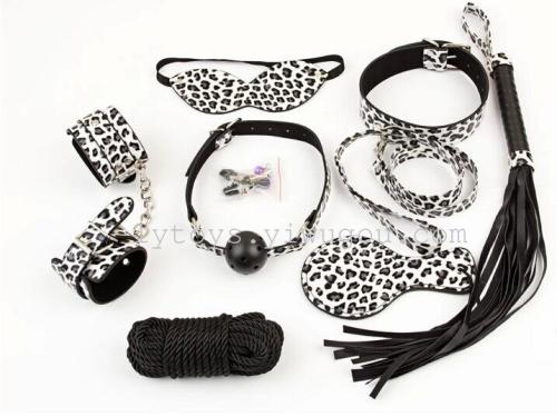 sex toys leopard print 8-piece set handcuffs blindfold ball gag whip cotton string alternative adult toys factory direct sales