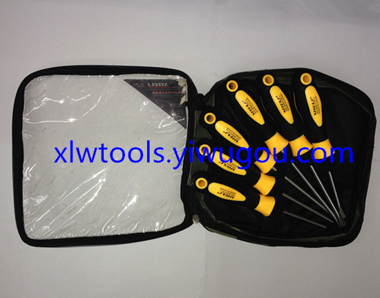 【Product Name】: Black and Yellow Handle Round Bar Single-use Magnetic Blackhead Screwdriver Cross and Square Set 【Product Model】: 0834 【Product Size】: Two sets of 6.0*100mm/4 inch, Two sets of 6.0*125mm/5 inch, Two sets of 6.0*150mm/6 inch 【Product Material】: Blade Shaft: Chromium Vanadium Steel/CR-V Handle: Plastic (Environmental friendly) Note: Quantity can be negotiated for price. |