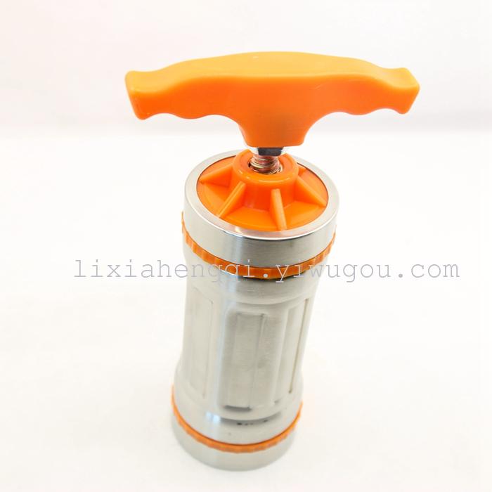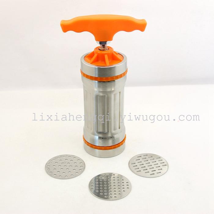 2. unscrew the bottom cover and the good face cut or pinch the strips into cylinders in growing up, twist the handle squeeze out noodles. Juicing action method: