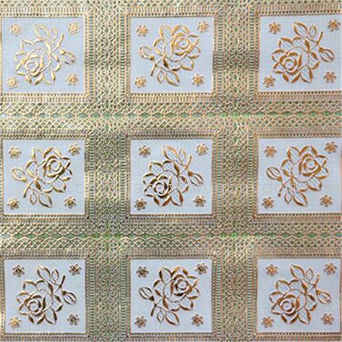 Imitation brocade lace tablecloth. Material: The surface is made of eco-friendly resin material, and the bottom is waterproof film, which is high-temperature press-molded product. Features: Waterproof, anti-scald (within 130°), eco-friendly. Suitable for: various dining tables, coffee tables, television cabinets, desks, small covers.
