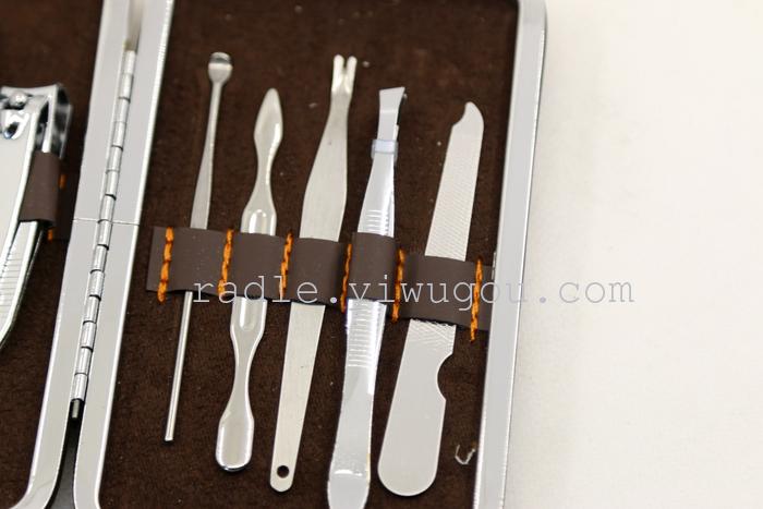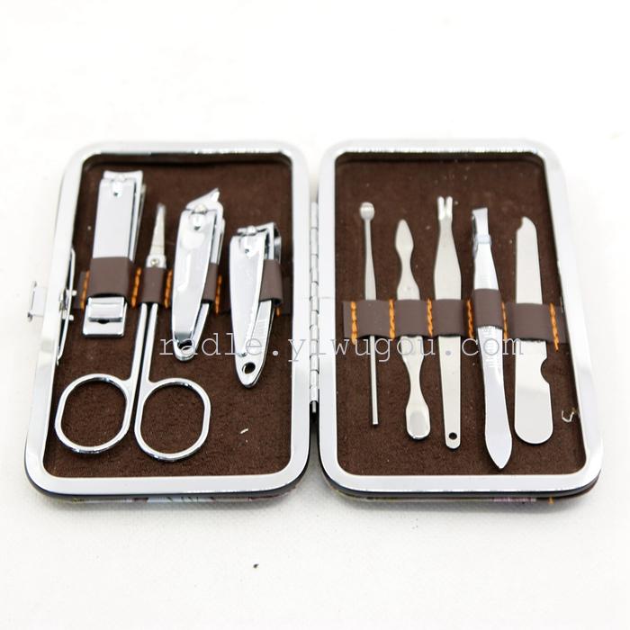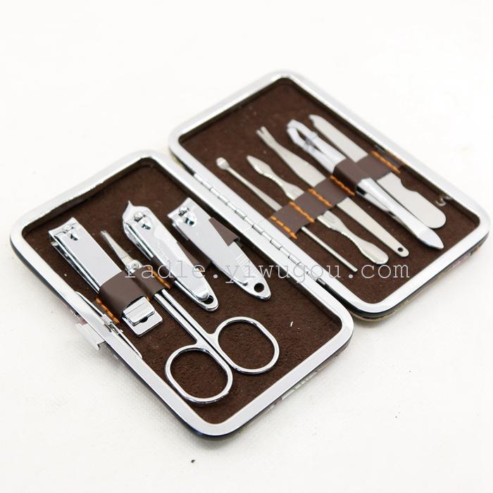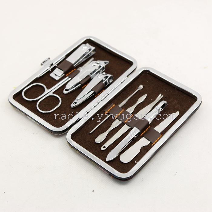 【Product Brand】Xinde Hardware 【Product Name】Fine Stainless Steel 9-Piece Set 【Product Item Number】Nail Scissors Beauty Kit 【Product Material】High-quality PU leather + imported stainless steel 【Product Type】Personal Grooming/Cleaning/Care Product Specification: 14*10*3cm 【Color Classification】As shown in the figure 【Product Features】The set is designed with a humanized approach, making it convenient to carry and stylishly compact, ensuring long-lasting durability. It is a great helper for your nail care. The set is fully equipped with everything you need, making it a great companion for outdoor travel and everyday life. 【Product Packaging】Individual beautiful color box packaging 【Product Accessories】Scissors, skin file, large round nail clippers, medium round nail clippers, slant nail clippers, nail file, ear pick, skin file.刮刀