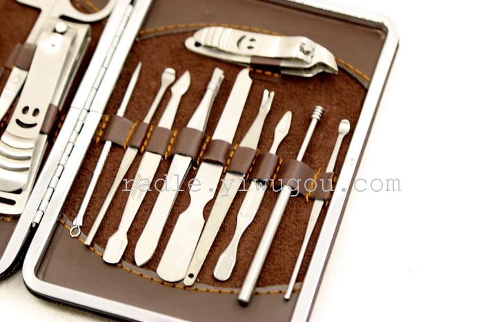 【Product Brand】Xinde Hardware 【Product Name】Fine Stainless Steel 15-Piece Set 【Product Item Number】Nail Scissors Beauty Kit 【Product Material】High-quality PU leather + imported stainless steel 【Product Type】Personal Grooming/Cleaning/Care Product Specification: 20*15*3cm 【Color Classification】As shown in the figure 【Product Features】The set is designed with a humanized approach, making it convenient to carry and stylishly compact, ensuring long-lasting durability. It is a great helper for your nail care. The set is fully equipped with everything you need, making it a great companion for outdoor travel and everyday life. 【Product Packaging】Individual beautiful color box packaging 【Product Accessories】Large Nail Scissors, Nail Clippers, Eyebrow Scissors, Medium Nail Scissors, Slant-edged Nail Scissors, Pimple Punches, Guan Dao, Nail File, Dead Skin Forks, Double-ended Pick, Eyebrow Clamps, Oil Ear Pick, Conical Ear Pick, Slant-edged Foot Scraping Knife, Flat-edged Foot Scraping Knife