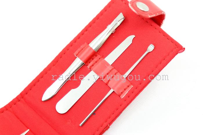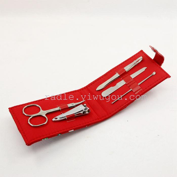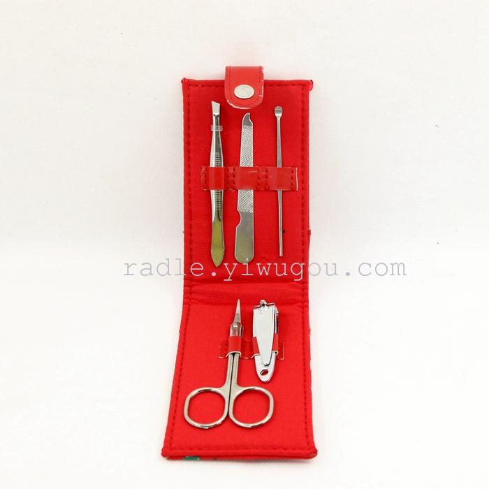 【Product Brand】Xinde Hardware 【Product Name】Fine Stainless Steel 5-Piece Set 【Product Item Number】Nail Scissors Beauty Kit 【Product Material】High-quality PU leather + imported stainless steel 【Product Type】Personal Grooming/Cleaning/Care Product Specification: 10*5cm 【Color Classification】As shown in the figure 【Product Features】The set is designed with a humanized approach, making it convenient to carry and stylishly compact, ensuring long-lasting durability. It is a great helper for your nail care. The set is fully equipped with everything you need, making it a great companion for outdoor travel and everyday life. 【Product Packaging】Individual beautiful color box packaging 【Product Accessories】Medium Nail Scissors, Ear Pick, Eyebrow Scissors, Eyebrow Tweezers, Nail File