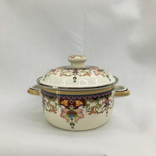 Scientific name enamel pot, commonly known as enamel pan in China, base material is cold rolled steel plate, outer enamel has passed more than a dozen bumper harvest experienced craftsman, who has been hand-made for many times, fired at a high temperature of more than 800 Degrees, and then invited professional designers to meet people's needs and I like to design pictures and texts of different colors for decoration. Beautiful enjoyment from appearance and vision, strong acid resistance and heat transfer in daily use fast, smooth appearance, easy to clean, relatively hygienic, with certain heat preservation effect, no heavy metal precipitation, high safety factor.