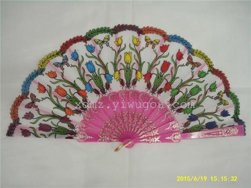 【产品品牌】:江西新德扇业 【产品名称】:塑料彩杆郁金香花扇 【产品合拢尺寸】:23CM 展开尺寸42.5CM 【产品材质】:塑料加棉布 【产品面料颜色】:多色,红色,粉色,紫色,蓝色,绿色,黄色,黑色,白色等; 【产品扇骨颜色】:彩色杆 【是否有现货】:是 【产品包装】:12把/OPP,混色包装 【买家注意】:现货一般是不指定扇面及扇骨颜色,随机配货的。如需指询货后再拍。