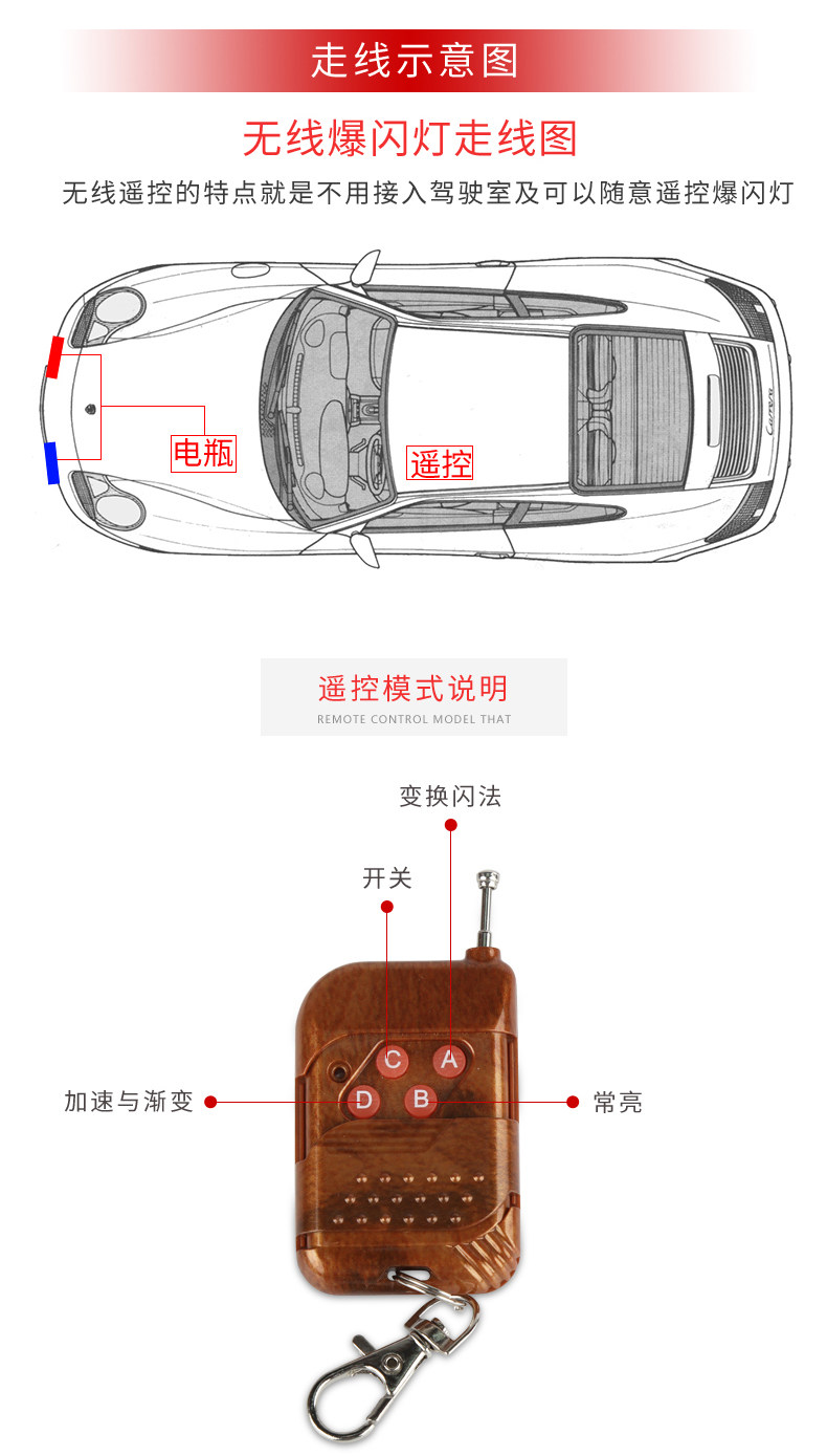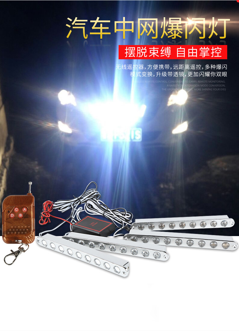 通过遥控器可以控制日行灯常亮及爆闪功能