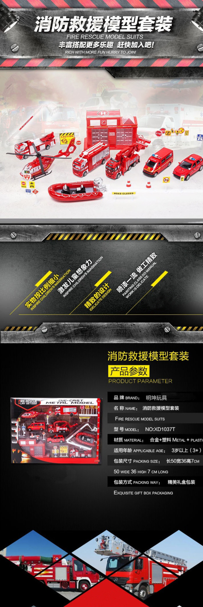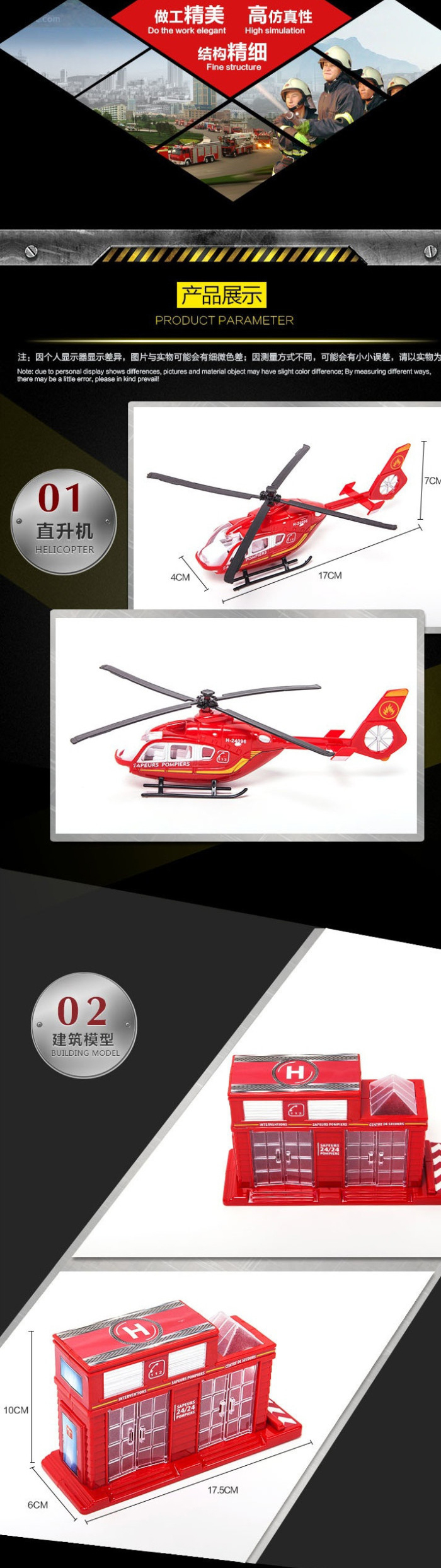About Product:When the toy or model, transparent color box packaging, the grade alloy fire and rescue model, diverse styles, vivid shape, a set of internal have multiple styles.