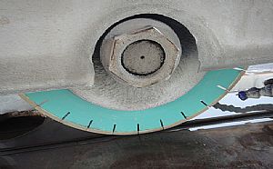 Diamond saw blade cutting piece of marble cutting piece of granite slicing