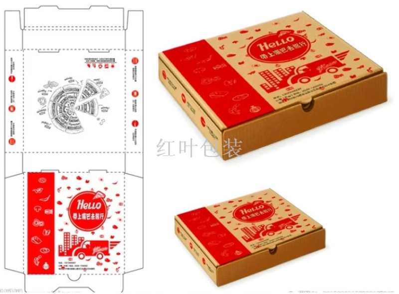 Wholesale, Custom, Various Sizes, Pizza Boxes, 10 inches, 12 inches, 14 inches, 16 inches, 18 inches.Material: kraft paper and white card paper