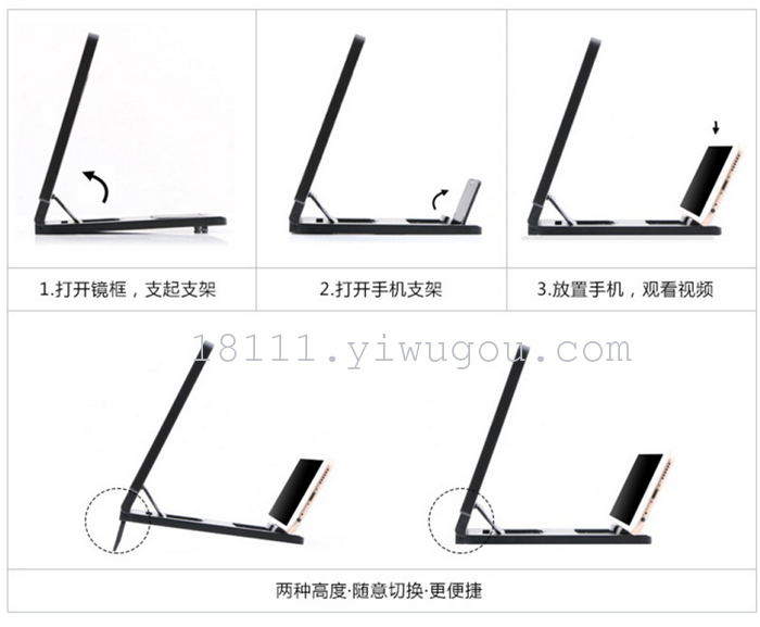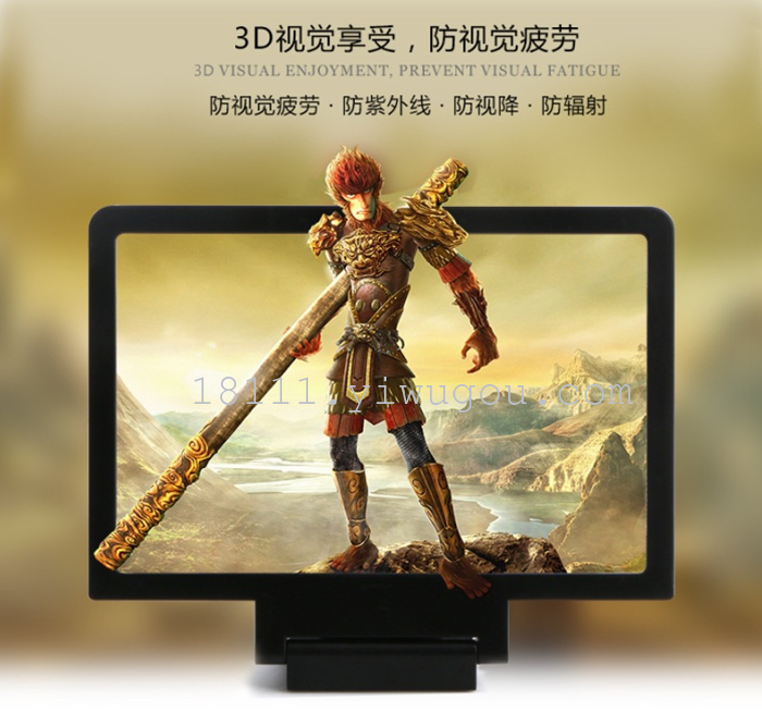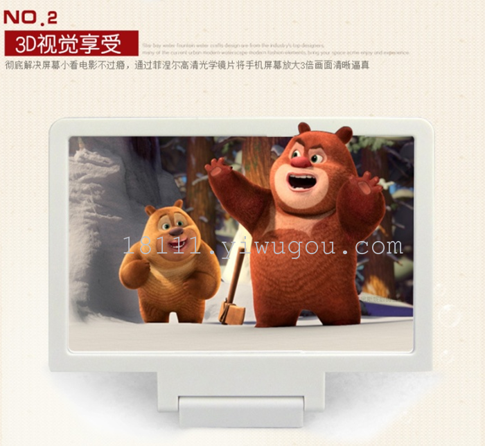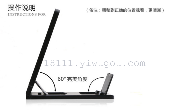 three; mobile phone video amplifier with high definition magnifying optical technology, no power supply, no use cost, energy saving and environmental protection.
