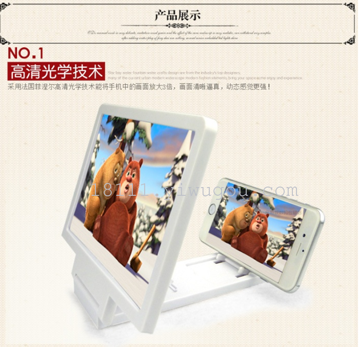 ; mobile video amplifier by French Fresnel high-definition optical technology can enlarge the picture phone three times, clear and vivid picture, dynamic feeling stronger!.