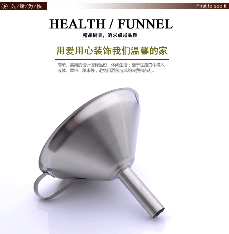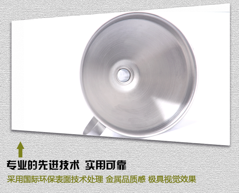 此是不锈钢漏斗,12.6*13*15CM单个重:148克,表面处理:内砂光,外镜光,