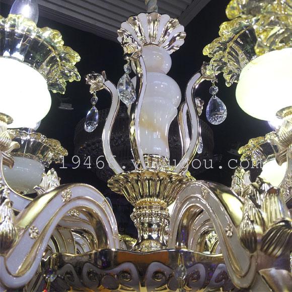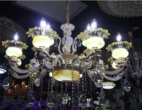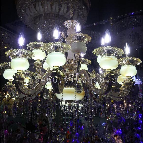 Lamp body description: zinc alloy bent tube, jade LED lamp cup base, k9 crystal, 2 layers (upper layer 5 heads, lower layer 10 heads), hanging chain length 80CM, packaging is completely loose, the overall foam is individually packaged, the jade cup is equipped with LED, the LED bulb light source is not included, it needs to be purchased separately.