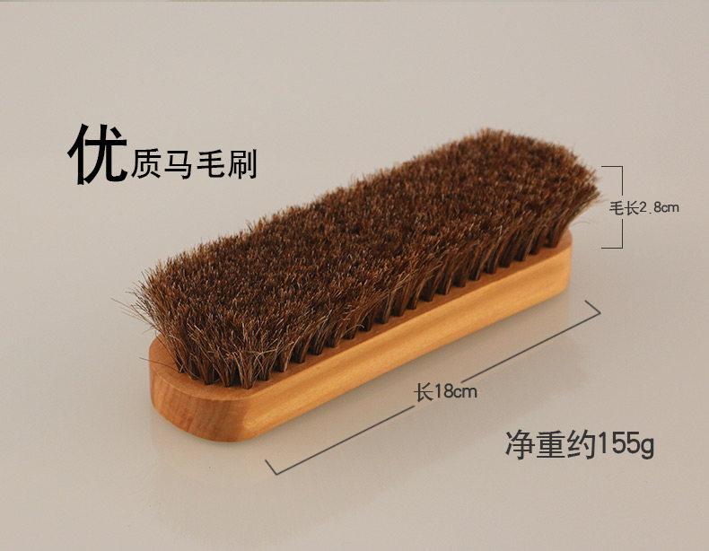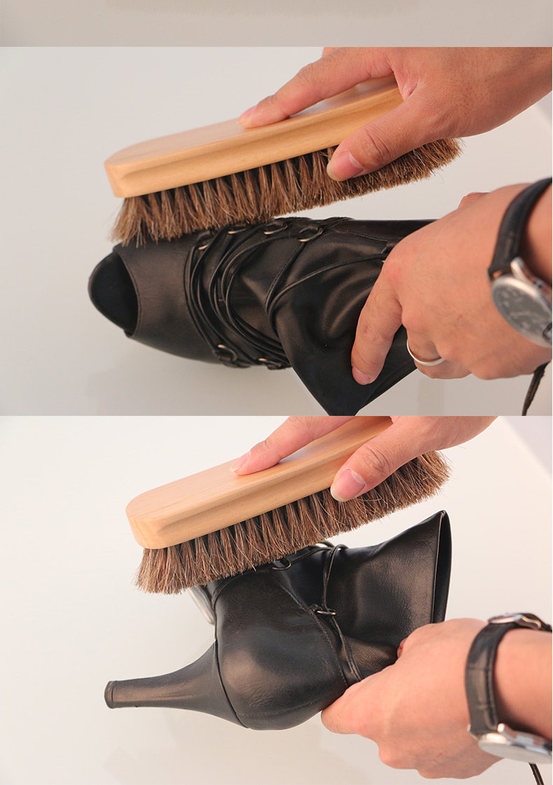 1. Horsehair shoe brushes are softer than pighair and plastic shoe brushes, which makes them less likely to damage the leather surface when used for cleaning, oiling, and polishing.