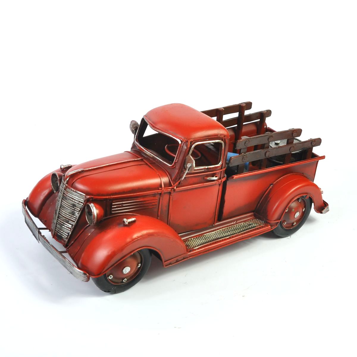 三、做工问题:本店所有产品制作工艺均为"手工做旧”。与合金车模追求的精致和仿真不同,铁皮车模追求的是粗狂和做旧。为达到做旧效果,产品上出现的一些锈迹,明显的焊接痕迹,仿灰尘上漆都是故意所为,并非质量问题或是旧的商品。本店每一件商品都是手工制作,不比机器剪裁,模型左右不能达到100%对称,希望亲能理解。本店产品属于静态模型,车轮不是每个都能灵活转动的。望亲在购买前能对铁皮工艺做些了解,以免和合金车模产生混淆。