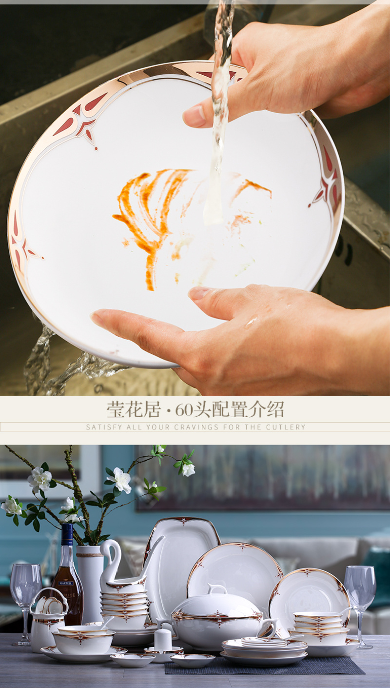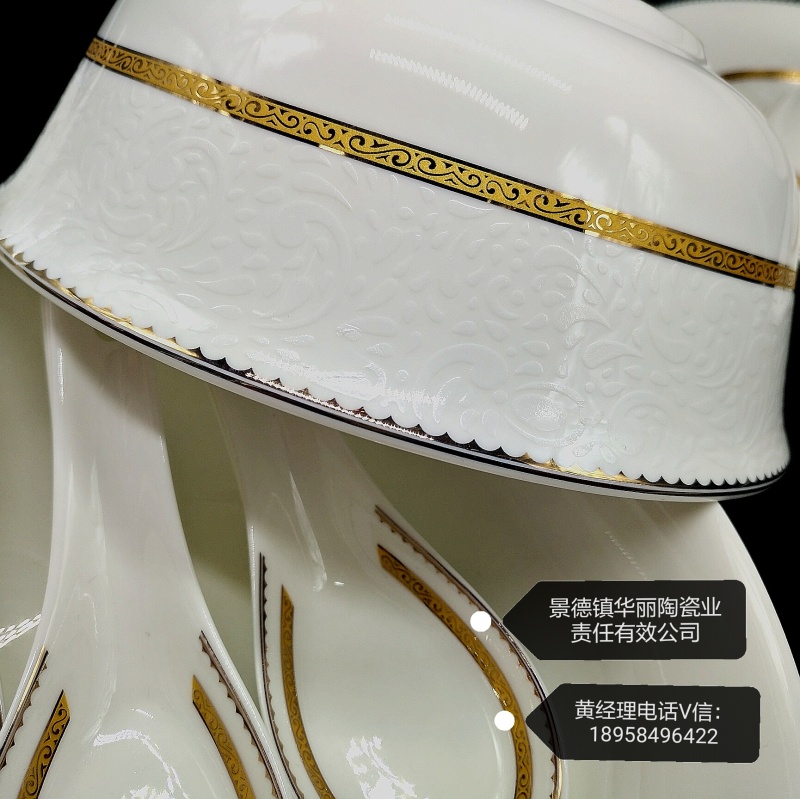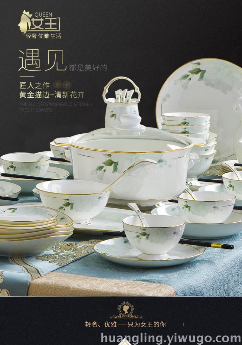 Product attributes: 1. Directly sold by Jingdezhen factory, 60-piece bone china tableware, with snow-white transparency and collection value.