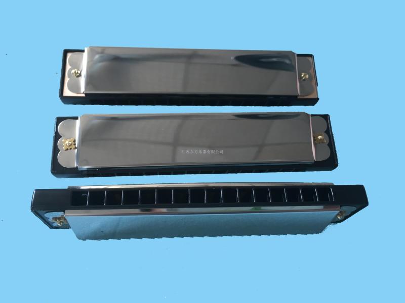16-hole aluminum seat plate stainless steel shell harmonica, single-sided, each PVC bag, 15 PCs/inner box, 240 PCs/outer box.