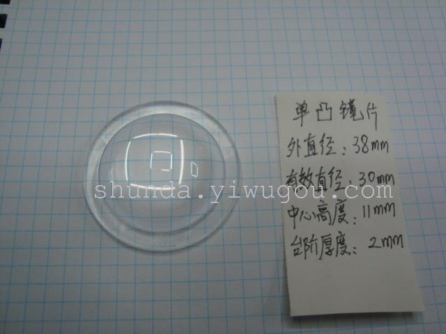 long-term production of various sizes of single lens, the convex lens, the lens used in the LED above, 38MM in diameter, effective diameter: 30MM thickness: 11MM, intermediate step edge thickness: 2MM, a box of 3000, welcome to the needs of businesses to purchase, price concessions, product type: SD3108