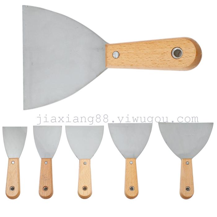 The model of the wood-handled oil putty knife is available in the following sizes (in inches): 1, 1.5, 2, 2.5, 3, 3.5, 4, and 5 inches, totaling 8 specifications. (1 small box = 12 pieces, 1 box = 20 small boxes = 240 pieces). This is an essential tool for home decoration, used for filling, scraping, leveling, organizing, and embellishing.This product is made by grinding a general putty knife. It has a shape with one sharp edge and one round edge. The sharp corner is mainly used for scraping seams and removing dirty and old debris. The round edge can be used to smooth and trim the filler. This product is a specially processed auxiliary tool designed for convenience in the application of porcelain cleaning paste. When constructing the seams, use this special small shovel to scrape the paste fully and fill the seams; then use the small shovel to tightly remove the excess paste from the brick surface and backfill the brick joints. Finally, use the round edge of the small shovel to straightly scrape a beautiful shallow concave arc along the brick joints, and the job is complete! This product can be used for atomized paint, putty, removing dirt, mixing putty, removing old coating, etc.