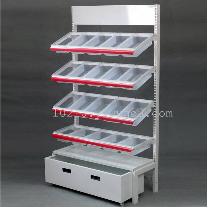 6 on the front of each layer has a price tag, placed snacks clean and orderly, convenient price.