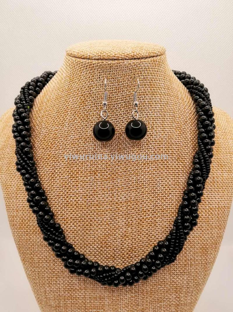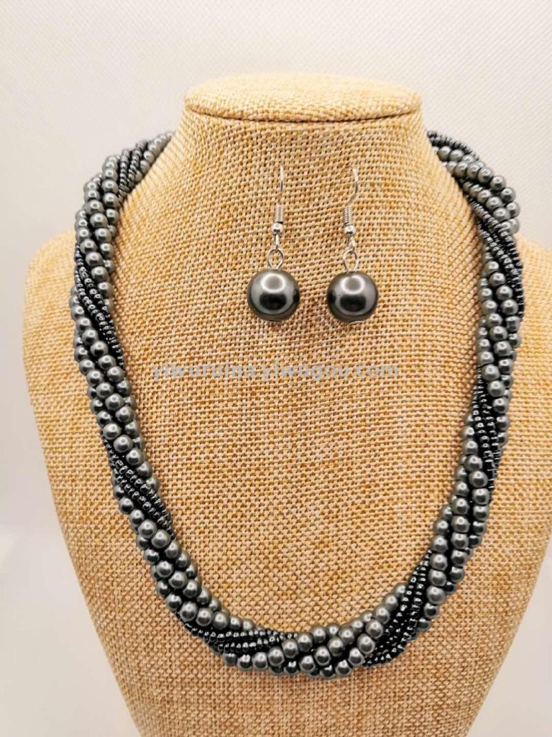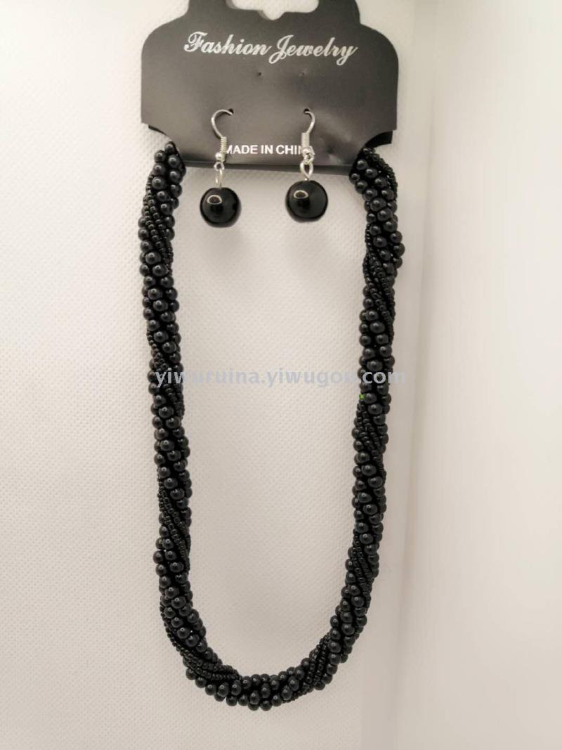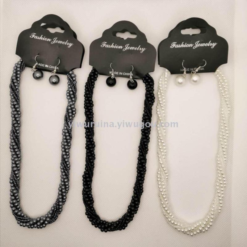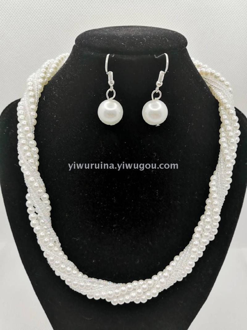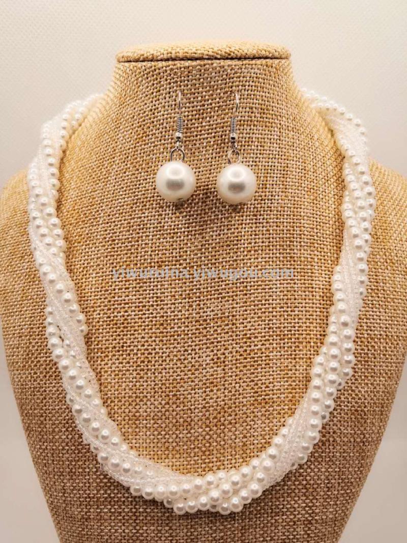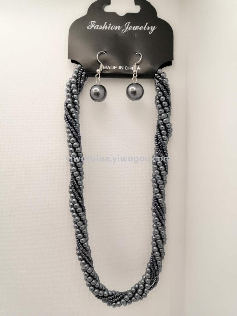名称:珍珠米珠麻花短项链+耳环套装