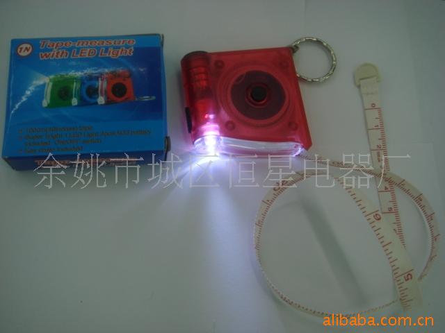 This square LED tape measure keychain has a very tidy appearance. Its shell is made of brand new ABS injection molding, and the LED light brightness is 10000-13000 (MCD). Three L1130 buttons provide the light source, and the silver light shell is processed through spray painting technology. The panel has a total of four main colors, which are black, blue, red, and yellow (any color can be matched according to customer requirements). The large area of the product can be used for printing, heat transfer, etc., and is equipped with a soft tape measure function. The plastic parts are multi-colored and can be printed with LOGO for advertising. It is equipped with a 1 meter steel tape measure, and the tape measure provides dual-scale measurement for both the metric and imperial systems.