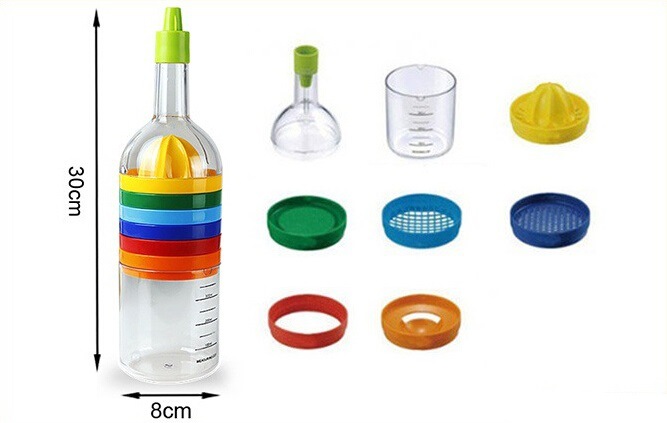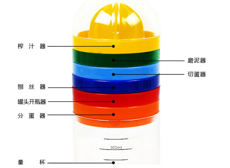 In addition, there are can opener, lemon squeezer and so on, and the bottom of the jar is a measuring cup. If you cover the front end of the jar, it becomes a bottle, which can just hold salad sauce, isn't it very convenient? With this can, cooking is easier and does not take up space.