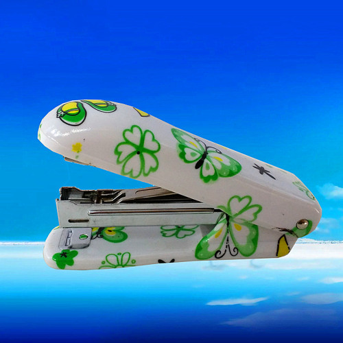 this section of the original Mini stapler, ergonomic design, ceramic shell, flowers and butterfly pattern, fashion style, appearance beautiful luxury; professional lever structure, simple operation, labor saving, nail pushing flexible and does not become warped, pin, the binding effect of firm and beautiful; is your office life good partners.