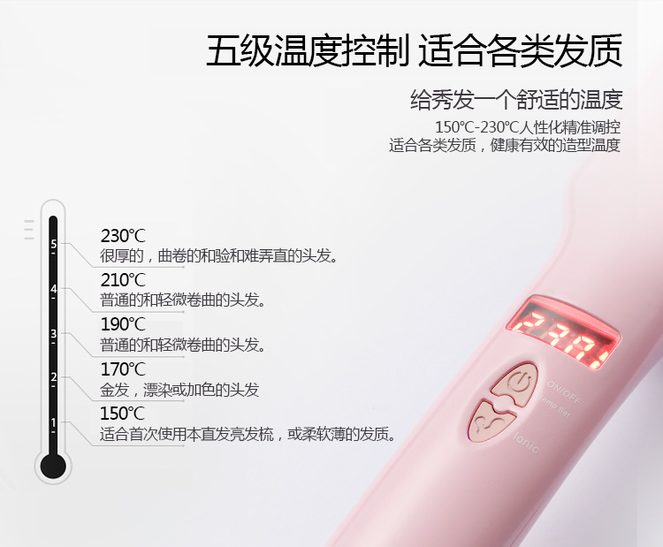 About Product:Brand Meister product category for curling or straightening model MS-1699 applicable hair wet and dry thermal conductor material tourmaline ceramic diameter of thermal conductor 21mm-30mm temperature control and adjustment 9-segment modeling time 3-5 minutes color black, pink after-sales service store warranty segment number 9 segment Power 30W Black, 30W pink (W