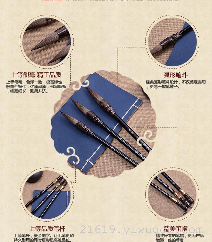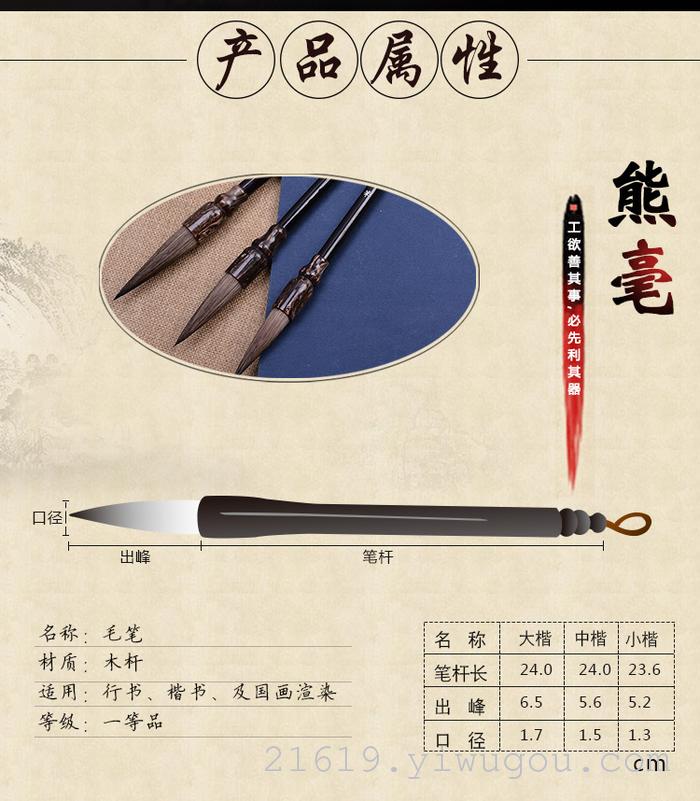 The hair on a bear's pelt is relatively hard, making it suitable for calligraphy and painting.