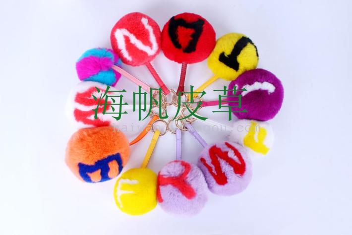 letter rex rabbit fur ball pendant
