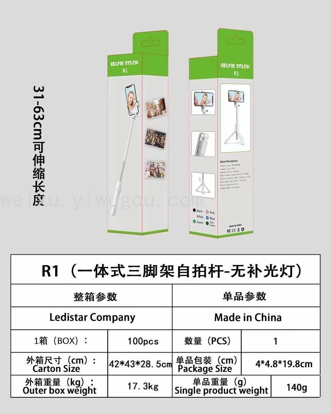One-piece tripod self-timer pole without flashlight