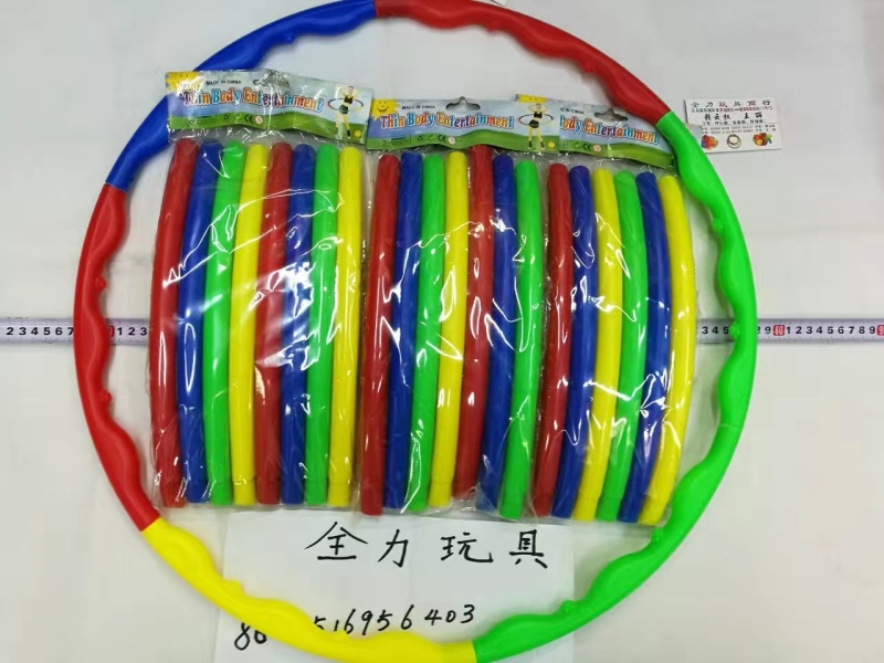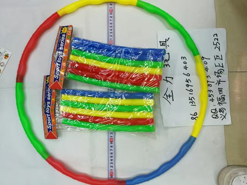 This hula hoop is assembled from several blow molding tubes and is made of brand new materials. It is environmentally friendly, durable, wear-resistant, and drop-resistant. It comes with a hanging card and is packaged in an OPP bag, making it very beautiful and elegant. It is very suitable for primary school students, kindergarten students for exercises, games, parent-child interaction activities, and competitions. The cardboard packaging is suitable for a very small volume, saving shipping costs. Please feel free to call for consultation at 0579-85287945, 13516956403, or contact us through QQ at 453893409.