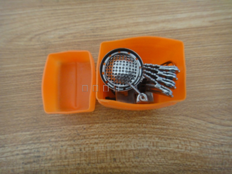 Stainless steel, copper, aluminum alloy black oxide, unfolded size 90mmX90mmX80mm, it's still quite suitable for a set of pots.