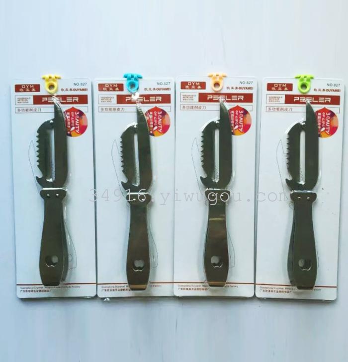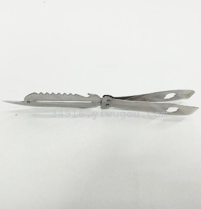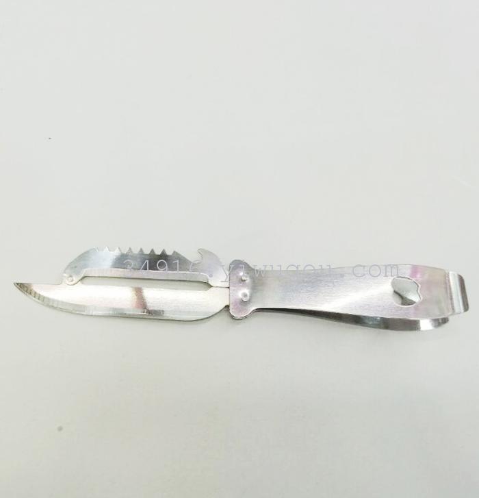 采用不锈钢材质,锯齿刀口可以刮鱼鳞,还能开啤酒、拔毛等,实用方便 采用不锈钢材质,