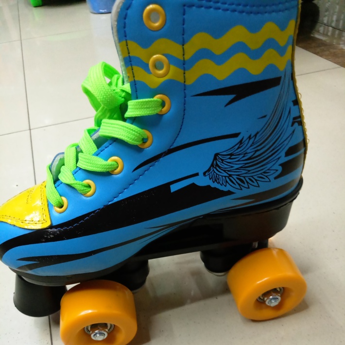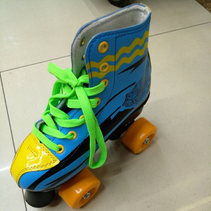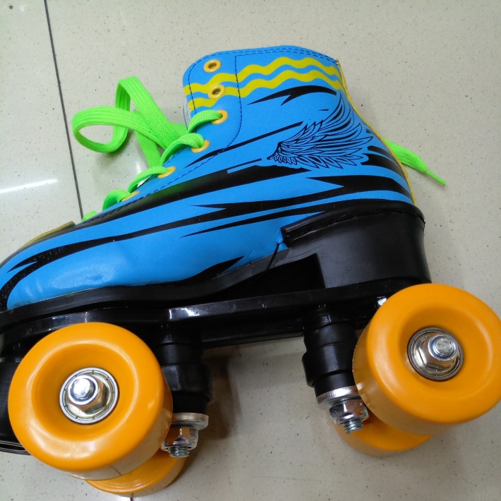 Adult double-row roller skates with colored wheels. Sizes available: 30-45.